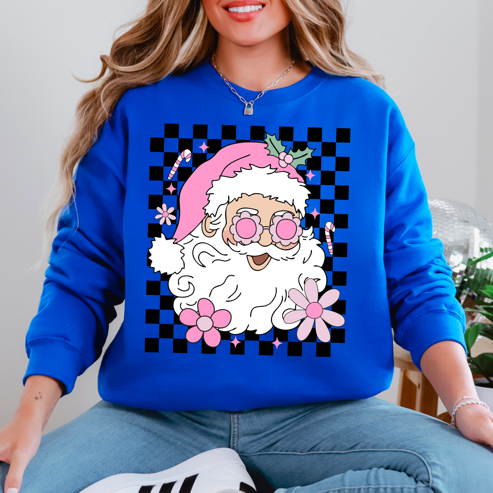 Checkered Groovy Santa Crewneck Sweatshirt