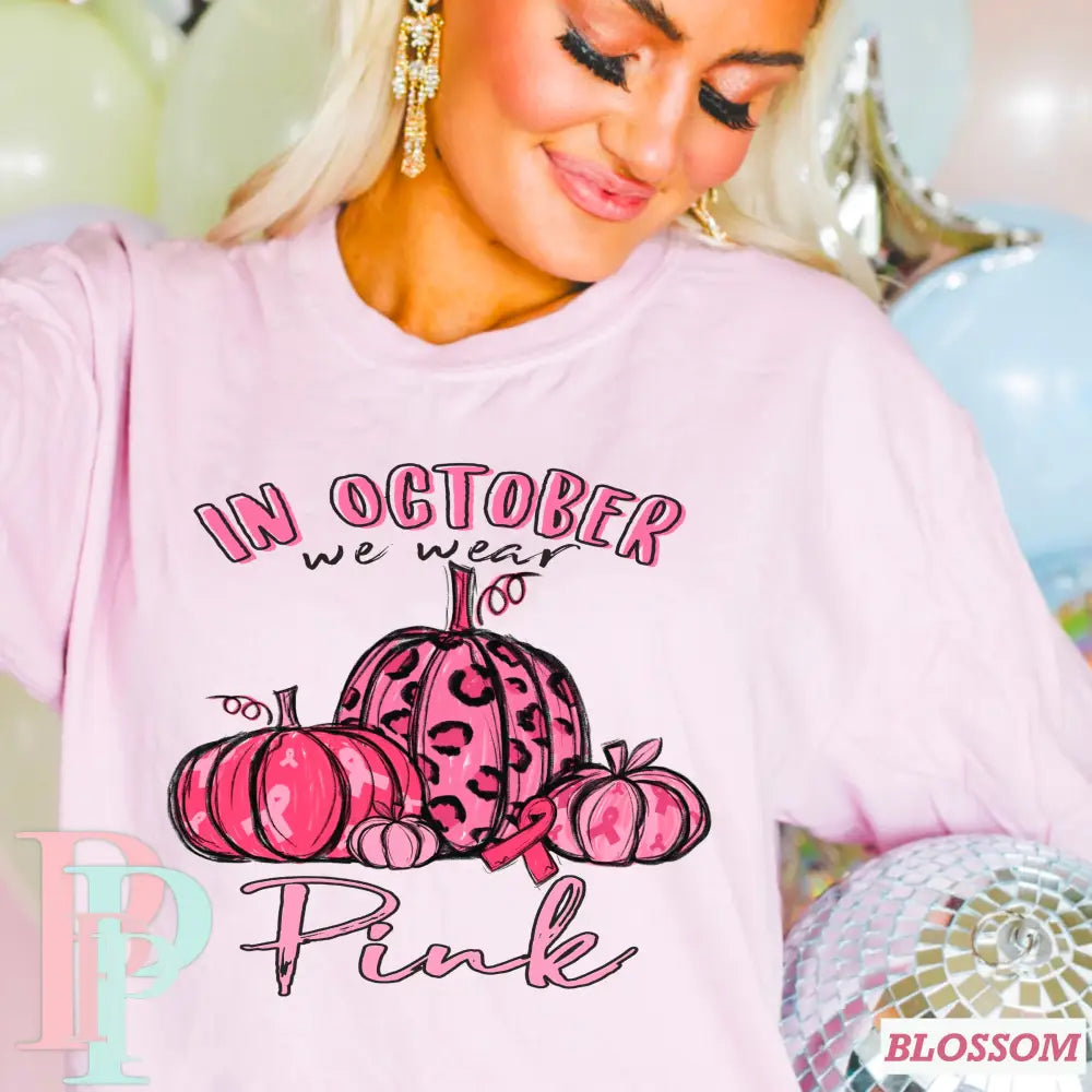 In October We Wear Pink Pumpkins Comfort Color Graphic Tee