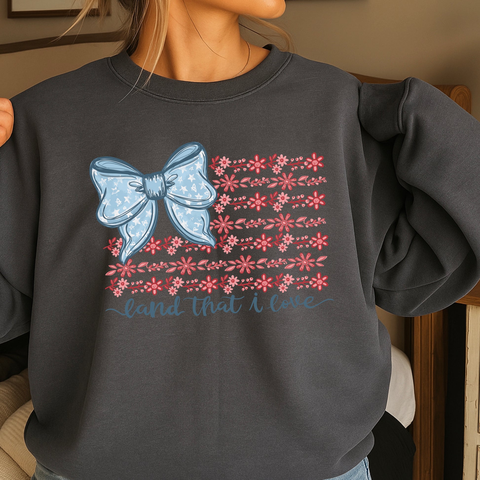 Land Of The Free Patriotic Crewneck Sweatshirt