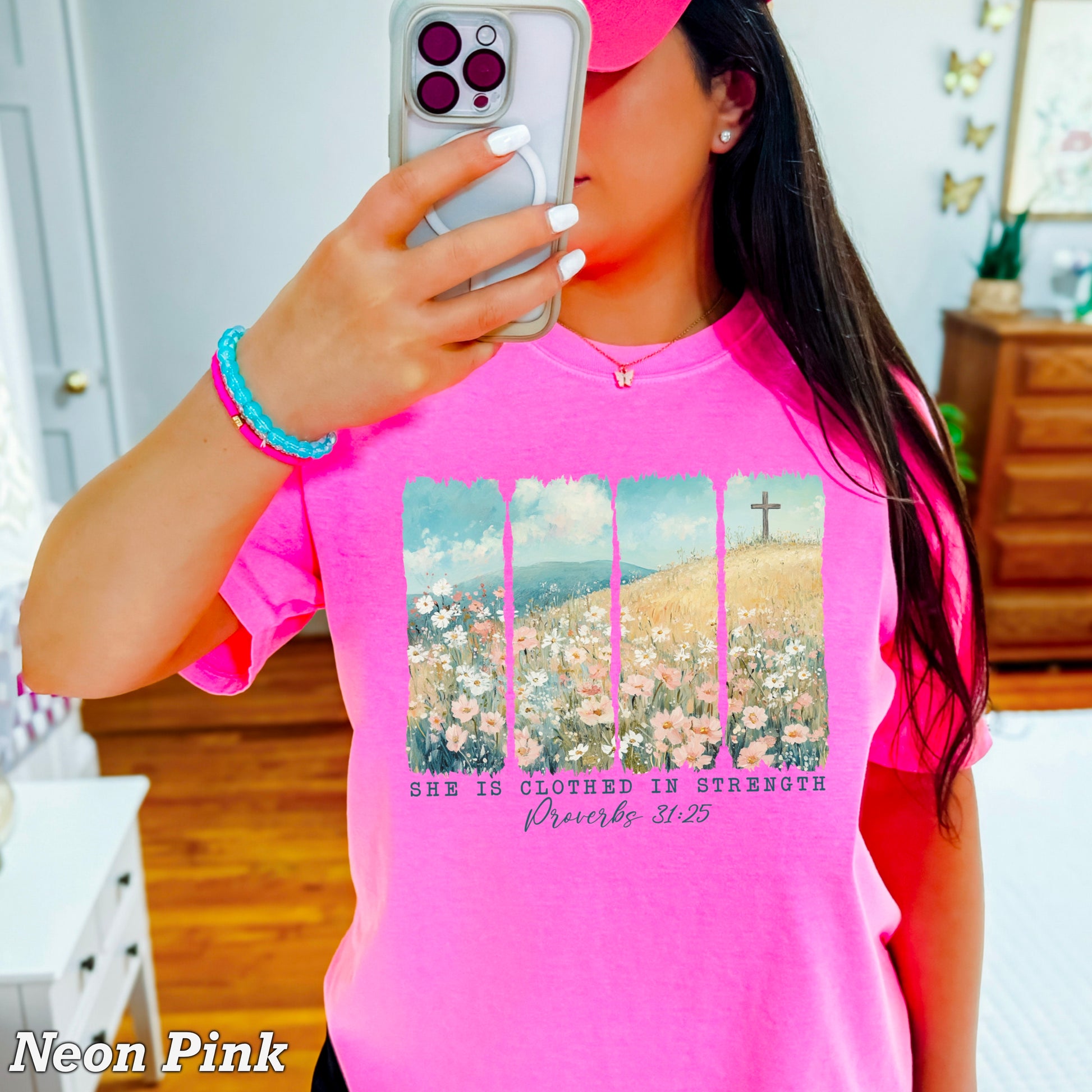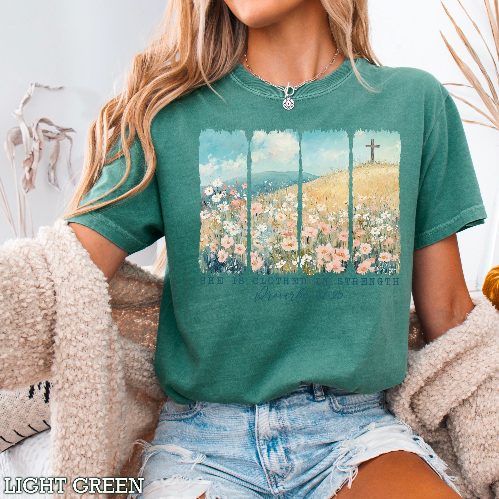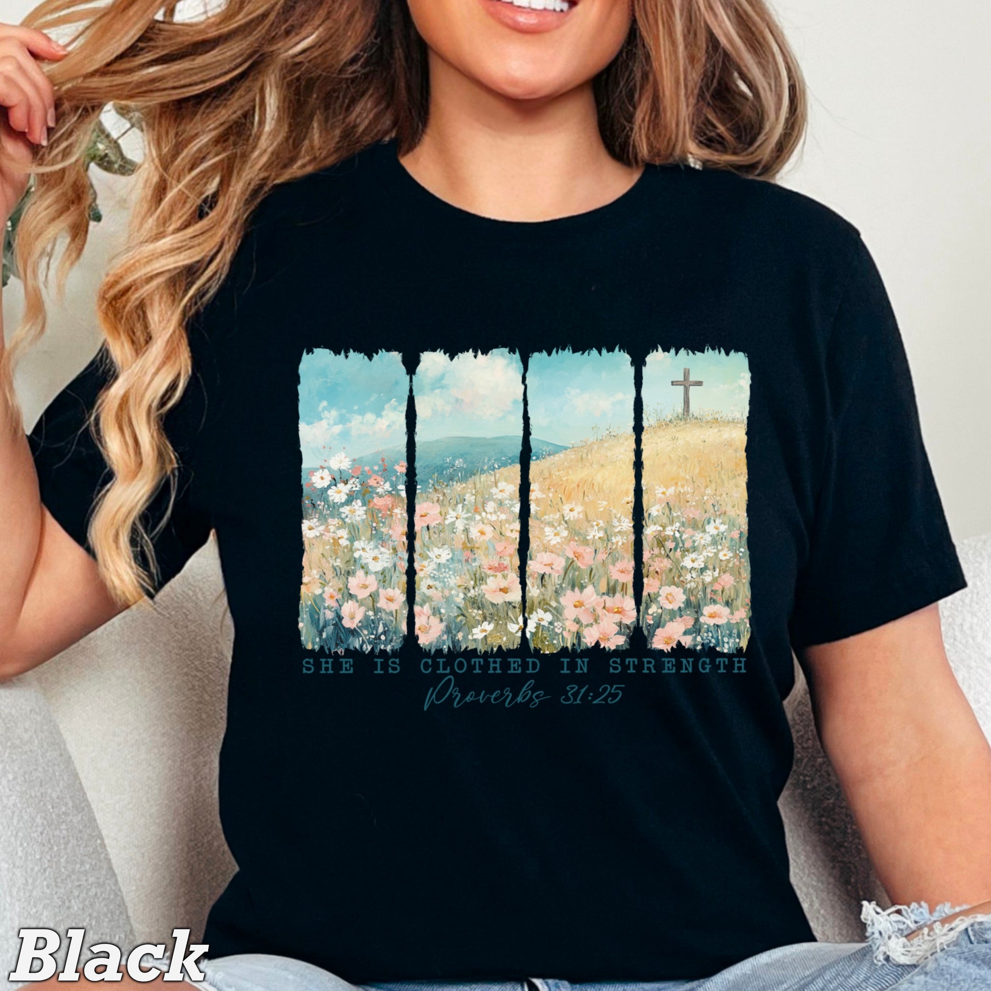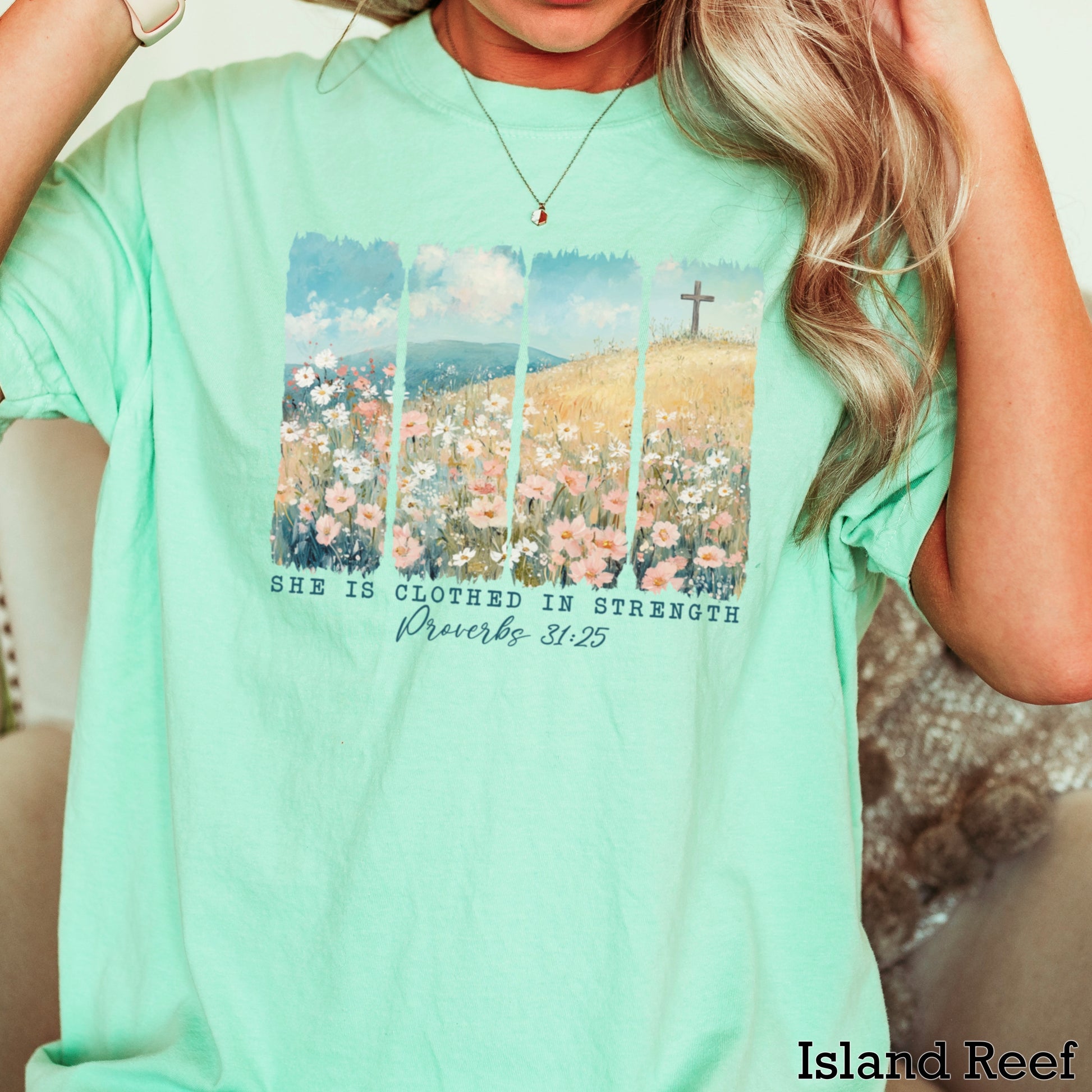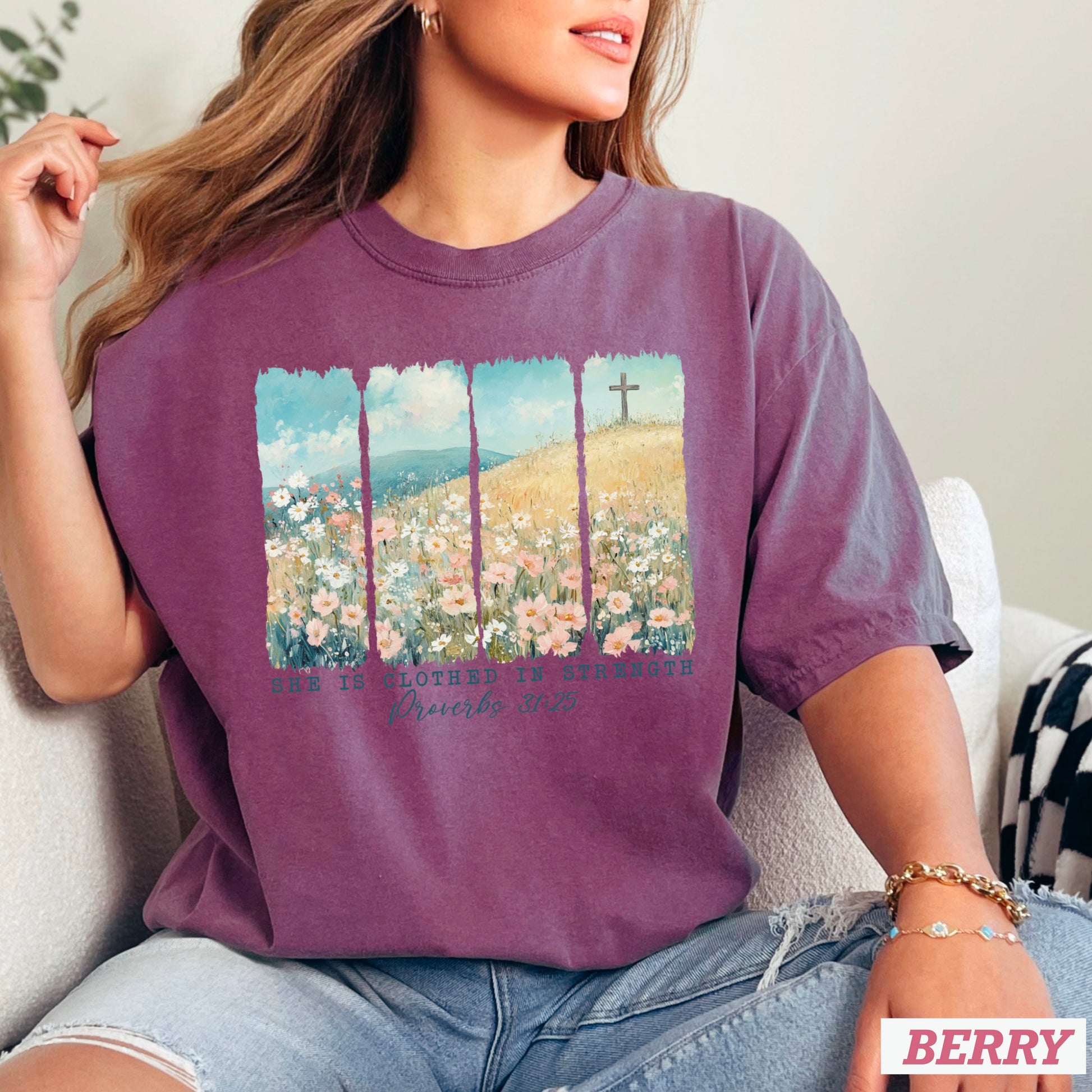 She Is Clothed In Strength Christian Comfort Color Graphic Tee